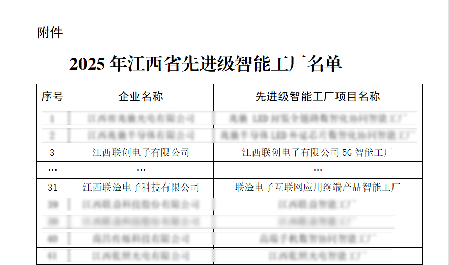 近日,江西省工业和信息化厅正式公布2025年江西省“先进级智能工厂”名单,186家企业入选。其中米兰官方网站,米兰(中国)、江西联淦电子科技有限公司2家联创电子系企业名列榜单。这标志着公司在智能制造领域的创新成果再次获得政府权威认可。